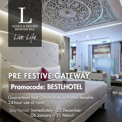 Inclusive of: 2 nights stay at Lifestyle Suite Free upgrade to Legian Suite Love Flower Arrangement on bed and Flower Bouquet Breakfast in room on bed on 2nd day A bottle of sparkling wine 21% Tax & Service Romantic turn down service Complimentary one time half an hour relaxing massage ...